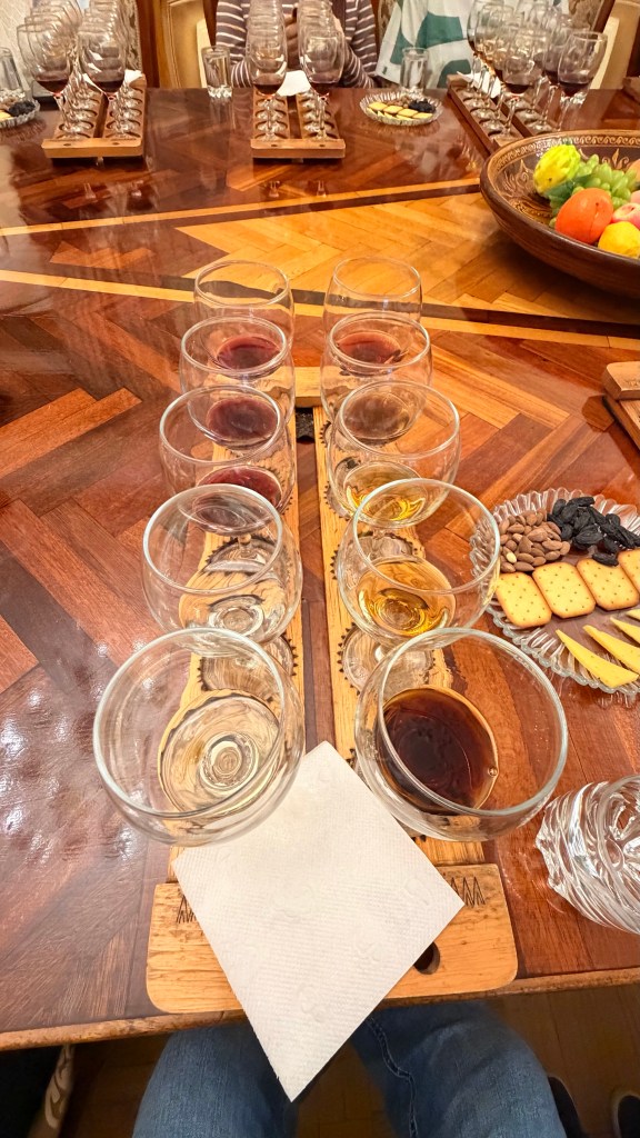 I was surprised to find that many wineries offer experiences and tastings. One of these was the Khoverenko Winery, where we tasted 12 beverages ranging from dry whites to aged Cognacs and the Samarkand balm, a herbal liquor.